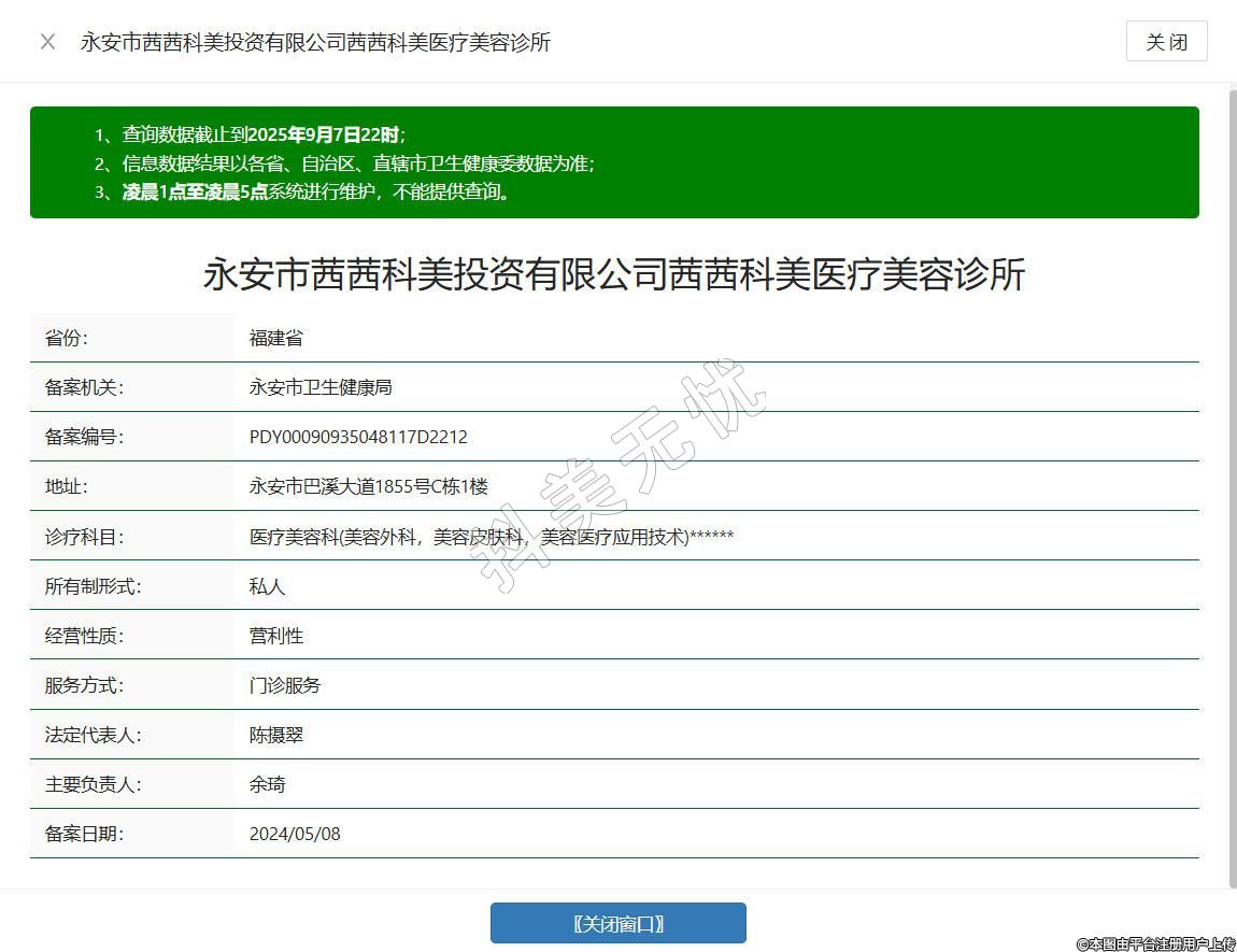 永安市茜茜科美投資有限公司茜茜科美醫(yī)療美容診所