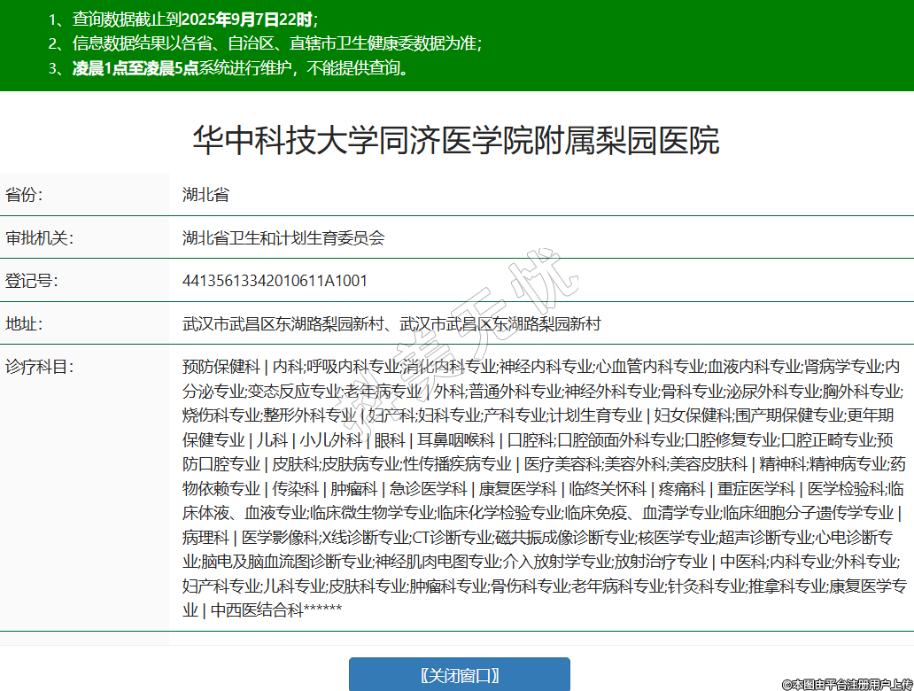 省份:湖北省審批機關:湖北省衛(wèi)生和計劃生育委員會登記號:44135613342010611A1001地址:武漢市武昌區(qū)東湖路梨園新村、武漢市武昌區(qū)東湖路梨園新村診療科目:預防保健科 | 內(nèi)科;呼吸內(nèi)科專業(yè);消化內(nèi)科專業(yè);神經(jīng)內(nèi)科專業(yè);心血管內(nèi)科專業(yè);血液內(nèi)科專業(yè);腎病學專業(yè);內(nèi)分泌專業(yè);變態(tài)反應專業(yè);老年病專業(yè) | 外科;普通外科專業(yè);神經(jīng)外科專業(yè);骨科專業(yè);泌尿外科專業(yè);胸外科專業(yè);燒傷科專業(yè);整形外科專業(yè) | 婦產(chǎn)科;婦科專業(yè);產(chǎn)科專業(yè);計劃生育專業(yè) | 婦女保健科;圍產(chǎn)期保健專業(yè);更年期保健專業(yè) | 兒科 | 小兒外科 | 眼科 | 耳鼻咽喉科 | 口腔科;口腔頜面外科專業(yè);口腔修復專業(yè);口腔正畸專業(yè);預防口腔專業(yè) | 皮膚科;皮膚病專業(yè);性傳播疾病專業(yè) | 醫(yī)療美容科;美容外科;美容皮膚科 | 精神科;精神病專業(yè);藥物依賴專業(yè) | 傳染科 | 腫瘤科 | 急診醫(yī)學科 | 康復醫(yī)學科 | 臨終關懷科 | 疼痛科 | 重癥醫(yī)學科 | 醫(yī)學檢驗科;臨床體液、血液專業(yè);臨床微生物學專業(yè);臨床化學檢驗專業(yè);臨床免疫、血清學專業(yè);臨床細胞分子遺傳學專業(yè) | 病理科 | 醫(yī)學影像科;X線診斷專業(yè);CT診斷專業(yè);磁共振成像診斷專業(yè);核醫(yī)學專業(yè);超聲診斷專業(yè);心電診斷專業(yè);腦電及腦血流圖診斷專業(yè);神經(jīng)肌肉電圖專業(yè);介入放射學專業(yè);放射治療專業(yè) | 中醫(yī)科;內(nèi)科專業(yè);外科專業(yè);婦產(chǎn)科專業(yè);兒科專業(yè);皮膚科專業(yè);腫瘤科專業(yè);骨傷科專業(yè);老年病科專業(yè);針灸科專業(yè);推拿科專業(yè);康復醫(yī)學專業(yè) | 中西醫(yī)結(jié)合科******級別:三級法定代表人:熊枝繁主要負責人:熊枝繁執(zhí)業(yè)許可證有效期:2012/11/29 -至- 2027/11/28 -