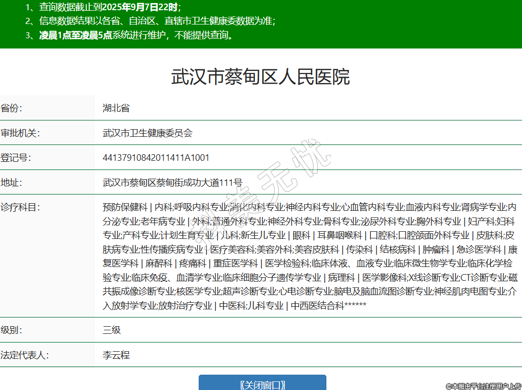 省份:湖北省審批機關(guān):武漢市衛(wèi)生健康委員會登記號:44137910842011411A1001地址:武漢市蔡甸區(qū)蔡甸街成功大道111號診療科目:預(yù)防保健科 | 內(nèi)科;呼吸內(nèi)科專業(yè);消化內(nèi)科專業(yè);神經(jīng)內(nèi)科專業(yè);心血管內(nèi)科專業(yè);血液內(nèi)科專業(yè);腎病學(xué)專業(yè);內(nèi)分泌專業(yè);老年病專業(yè) | 外科;普通外科專業(yè);神經(jīng)外科專業(yè);骨科專業(yè);泌尿外科專業(yè);胸外科專業(yè) | 婦產(chǎn)科;婦科專業(yè);產(chǎn)科專業(yè);計劃生育專業(yè) | 兒科;新生兒專業(yè) | 眼科 | 耳鼻咽喉科 | 口腔科;口腔頜面外科專業(yè) | 皮膚科;皮膚病專業(yè);性傳播疾病專業(yè) | 醫(yī)療美容科;美容外科;美容皮膚科 | 傳染科 | 結(jié)核病科 | 腫瘤科 | 急診醫(yī)學(xué)科 | 康復(fù)醫(yī)學(xué)科 | 麻醉科 | 疼痛科 | 重癥醫(yī)學(xué)科 | 醫(yī)學(xué)檢驗科;臨床體液、血液專業(yè);臨床微生物學(xué)專業(yè);臨床化學(xué)檢驗專業(yè);臨床免疫、血清學(xué)專業(yè);臨床細(xì)胞分子遺傳學(xué)專業(yè) | 病理科 | 醫(yī)學(xué)影像科;X線診斷專業(yè);CT診斷專業(yè);磁共振成像診斷專業(yè);核醫(yī)學(xué)專業(yè);超聲診斷專業(yè);心電診斷專業(yè);腦電及腦血流圖診斷專業(yè);神經(jīng)肌肉電圖專業(yè);介入放射學(xué)專業(yè);放射治療專業(yè) | 中醫(yī)科;兒科專業(yè) | 中西醫(yī)結(jié)合科******級別:三級法定代表人:李云程主要負(fù)責(zé)人:李云程執(zhí)業(yè)許可證有效期:2016/06/23 -至- 2031/06/22 -