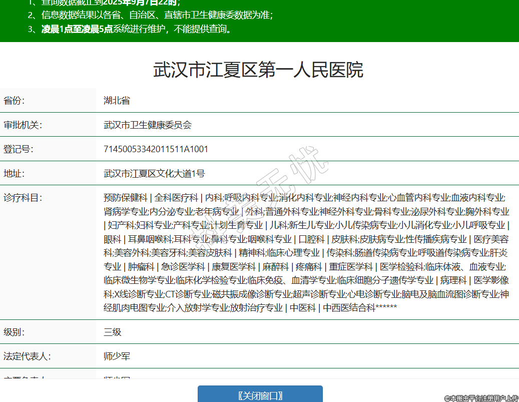 省份:湖北省審批機(jī)關(guān):武漢市衛(wèi)生健康委員會(huì)登記號(hào):71450053342011511A1001地址:武漢市江夏區(qū)文化大道1號(hào)診療科目:預(yù)防保健科 | 全科醫(yī)療科 | 內(nèi)科;呼吸內(nèi)科專(zhuān)業(yè);消化內(nèi)科專(zhuān)業(yè);神經(jīng)內(nèi)科專(zhuān)業(yè);心血管內(nèi)科專(zhuān)業(yè);血液內(nèi)科專(zhuān)業(yè);腎病學(xué)專(zhuān)業(yè);內(nèi)分泌專(zhuān)業(yè);老年病專(zhuān)業(yè) | 外科;普通外科專(zhuān)業(yè);神經(jīng)外科專(zhuān)業(yè);骨科專(zhuān)業(yè);泌尿外科專(zhuān)業(yè);胸外科專(zhuān)業(yè) | 婦產(chǎn)科;婦科專(zhuān)業(yè);產(chǎn)科專(zhuān)業(yè);計(jì)劃生育專(zhuān)業(yè) | 兒科;新生兒專(zhuān)業(yè);小兒傳染病專(zhuān)業(yè);小兒消化專(zhuān)業(yè);小兒呼吸專(zhuān)業(yè) | 眼科 | 耳鼻咽喉科;耳科專(zhuān)業(yè);鼻科專(zhuān)業(yè);咽喉科專(zhuān)業(yè) | 口腔科 | 皮膚科;皮膚病專(zhuān)業(yè);性傳播疾病專(zhuān)業(yè) | 醫(yī)療美容科;美容外科;美容牙科;美容皮膚科 | 精神科;臨床心理專(zhuān)業(yè) | 傳染科;腸道傳染病專(zhuān)業(yè);呼吸道傳染病專(zhuān)業(yè);肝炎專(zhuān)業(yè) | 腫瘤科 | 急診醫(yī)學(xué)科 | 康復(fù)醫(yī)學(xué)科 | 麻醉科 | 疼痛科 | 重癥醫(yī)學(xué)科 | 醫(yī)學(xué)檢驗(yàn)科;臨床體液、血液專(zhuān)業(yè);臨床微生物學(xué)專(zhuān)業(yè);臨床化學(xué)檢驗(yàn)專(zhuān)業(yè);臨床免疫、血清學(xué)專(zhuān)業(yè);臨床細(xì)胞分子遺傳學(xué)專(zhuān)業(yè) | 病理科 | 醫(yī)學(xué)影像科;X線(xiàn)診斷專(zhuān)業(yè);CT診斷專(zhuān)業(yè);磁共振成像診斷專(zhuān)業(yè);超聲診斷專(zhuān)業(yè);心電診斷專(zhuān)業(yè);腦電及腦血流圖診斷專(zhuān)業(yè);神經(jīng)肌肉電圖專(zhuān)業(yè);介入放射學(xué)專(zhuān)業(yè);放射治療專(zhuān)業(yè) | 中醫(yī)科 | 中西醫(yī)結(jié)合科******級(jí)別:三級(jí)法定代表人:師少軍主要負(fù)責(zé)人:師少軍執(zhí)業(yè)許可證有效期:2018/11/08 -至- 2033/11/07 -
