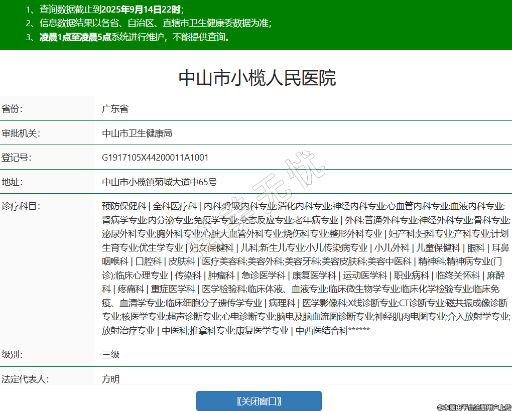 省份:廣東省審批機(jī)關(guān):中山市衛(wèi)生健康局登記號(hào):G1917105X44200011A1001地址:中山市小欖鎮(zhèn)菊城大道中65號(hào)診療科目:預(yù)防保健科 | 全科醫(yī)療科 | 內(nèi)科;呼吸內(nèi)科專業(yè);消化內(nèi)科專業(yè);神經(jīng)內(nèi)科專業(yè);心血管內(nèi)科專業(yè);血液內(nèi)科專業(yè);腎病學(xué)專業(yè);內(nèi)分泌專業(yè);免疫學(xué)專業(yè);變態(tài)反應(yīng)專業(yè);老年病專業(yè) | 外科;普通外科專業(yè);神經(jīng)外科專業(yè);骨科專業(yè);泌尿外科專業(yè);胸外科專業(yè);心臟大血管外科專業(yè);燒傷科專業(yè);整形外科專業(yè) | 婦產(chǎn)科;婦科專業(yè);產(chǎn)科專業(yè);計(jì)劃生育專業(yè);優(yōu)生學(xué)專業(yè) | 婦女保健科 | 兒科;新生兒專業(yè);小兒傳染病專業(yè) | 小兒外科 | 兒童保健科 | 眼科 | 耳鼻咽喉科 | 口腔科 | 皮膚科 | 醫(yī)療美容科;美容外科;美容牙科;美容皮膚科;美容中醫(yī)科 | 精神科;精神病專業(yè)(門診);臨床心理專業(yè) | 傳染科 | 腫瘤科 | 急診醫(yī)學(xué)科 | 康復(fù)醫(yī)學(xué)科 | 運(yùn)動(dòng)醫(yī)學(xué)科 | 職業(yè)病科 | 臨終關(guān)懷科 | 麻醉科 | 疼痛科 | 重癥醫(yī)學(xué)科 | 醫(yī)學(xué)檢驗(yàn)科;臨床體液、血液專業(yè);臨床微生物學(xué)專業(yè);臨床化學(xué)檢驗(yàn)專業(yè);臨床免疫、血清學(xué)專業(yè);臨床細(xì)胞分子遺傳學(xué)專業(yè) | 病理科 | 醫(yī)學(xué)影像科;X線診斷專業(yè);CT診斷專業(yè);磁共振成像診斷專業(yè);核醫(yī)學(xué)專業(yè);超聲診斷專業(yè);心電診斷專業(yè);腦電及腦血流圖診斷專業(yè);神經(jīng)肌肉電圖專業(yè);介入放射學(xué)專業(yè);放射治療專業(yè) | 中醫(yī)科;推拿科專業(yè);康復(fù)醫(yī)學(xué)專業(yè) | 中西醫(yī)結(jié)合科******級(jí)別:三級(jí)法定代表人:方明主要負(fù)責(zé)人:方明執(zhí)業(yè)許可證有效期:2024/08/02 -至- 2025/10/26 -