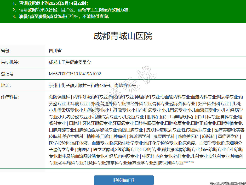 省份:四川省審批機關:成都市衛(wèi)生健康委員會登記號:MA67F0EC351018419A1002地址:崇州市街子鎮(zhèn)天順村三街路436號、尚德路10號診療科目:預防保健科 | 內科;呼吸內科專業(yè);消化內科專業(yè);神經內科專業(yè);心血管內科專業(yè);血液內科專業(yè);腎病學專業(yè);內分泌專業(yè);老年病專業(yè) | 外科;普通外科專業(yè);神經外科專業(yè);骨科專業(yè);泌尿外科專業(yè) | 婦產科;婦科專業(yè) | 兒科;小兒傳染病專業(yè);小兒消化專業(yè);小兒呼吸專業(yè);小兒心臟病專業(yè);小兒腎病專業(yè);小兒血液病專業(yè);小兒神經病學專業(yè);小兒內分泌專業(yè);小兒遺傳病專業(yè);小兒免疫專業(yè) | 眼科(門診) | 耳鼻咽喉科(門診);耳科專業(yè);鼻科專業(yè);咽喉科專業(yè) | 口腔科;牙體牙髓病專業(yè);牙周病專業(yè);口腔粘膜病專業(yè);口腔修復專業(yè);口腔正畸專業(yè);口腔種植專業(yè);口腔麻醉專業(yè);口腔頜面醫(yī)學影像專業(yè);預防口腔專業(yè) | 皮膚科;皮膚病專業(yè);性傳播疾病專業(yè) | 醫(yī)療美容科;美容皮膚科;美容中醫(yī)科 | 精神科(門診) | 腫瘤科 | 急診醫(yī)學科 | 康復醫(yī)學科 | 臨終關懷科 | 麻醉科 | 重癥醫(yī)學科 | 醫(yī)學檢驗科;臨床體液、血液專業(yè);臨床微生物學專業(yè);臨床化學檢驗專業(yè);臨床免疫、血清學專業(yè);臨床細胞分子遺傳學專業(yè) | 病理科 | 醫(yī)學影像科;X線診斷專業(yè);CT診斷專業(yè);磁共振成像診斷專業(yè);超聲診斷專業(yè);心電診斷專業(yè);腦電及腦血流圖診斷專業(yè);神經肌肉電圖專業(yè) | 中醫(yī)科;內科專業(yè);外科專業(yè);兒科專業(yè);皮膚科專業(yè);腫瘤科專業(yè);老年病科專業(yè);針灸科專業(yè);推拿科專業(yè);康復醫(yī)學專業(yè);預防保健科專業(yè)******級別:三級法定代表人:李瑤蓋主要負責人:張健執(zhí)業(yè)許可證有效期:2021/06/07 -至- 2035/11/08 -