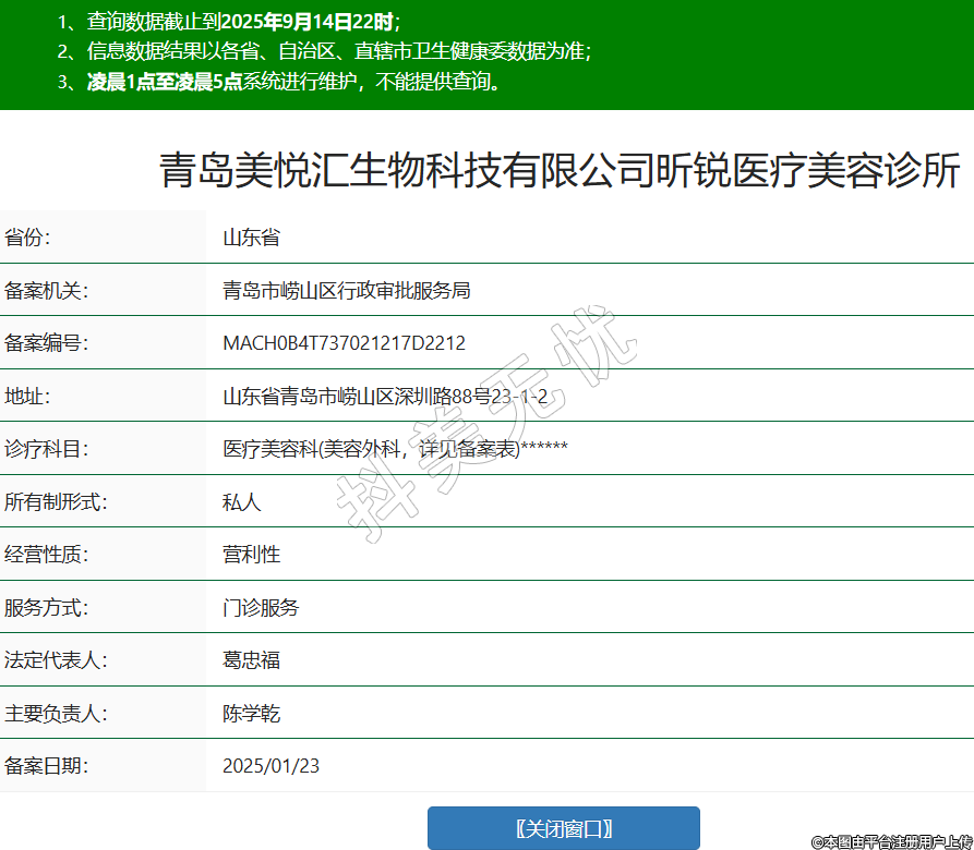 青島美悅匯生物科技有限公司昕銳醫(yī)療美容診所