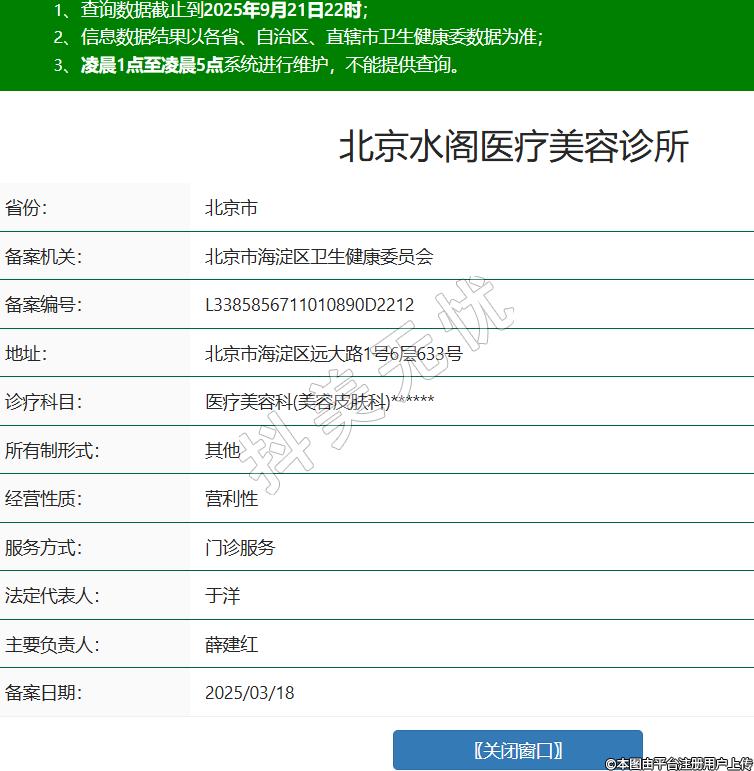 省份:北京市備案機關:北京市海淀區(qū)衛(wèi)生健康委員會備案編號:L3385856711010890D2212地址:北京市海淀區(qū)遠大路1號6層633號診療科目:醫(yī)療美容科(美容皮膚科)******所有制形式:其他經營性質:營利性服務方式:門診服務法定代表人:于洋主要負責人:薛建紅備案日期:2025/03/18 -