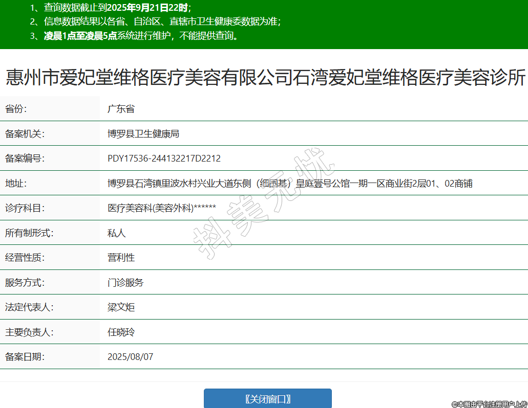 惠州市愛(ài)妃堂維格醫(yī)療美容有限公司石灣愛(ài)妃堂維格醫(yī)療美容診所