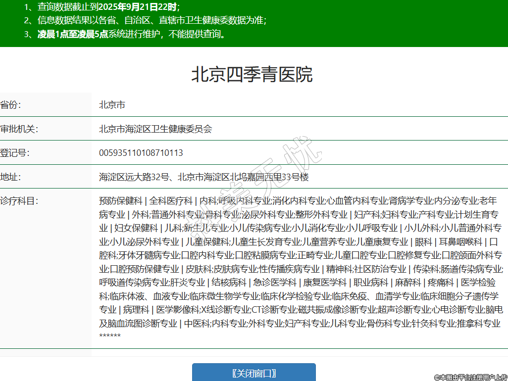 省份:北京市審批機關:北京市海淀區(qū)衛(wèi)生健康委員會登記號:005935110108710113地址:海淀區(qū)遠大路32號、北京市海淀區(qū)北塢嘉園西里33號樓診療科目:預防保健科 | 全科醫(yī)療科 | 內科;呼吸內科專業(yè);消化內科專業(yè);心血管內科專業(yè);腎病學專業(yè);內分泌專業(yè);老年病專業(yè) | 外科;普通外科專業(yè);骨科專業(yè);泌尿外科專業(yè);整形外科專業(yè) | 婦產科;婦科專業(yè);產科專業(yè);計劃生育專業(yè) | 婦女保健科 | 兒科;新生兒專業(yè);小兒傳染病專業(yè);小兒消化專業(yè);小兒呼吸專業(yè) | 小兒外科;小兒普通外科專業(yè);小兒泌尿外科專業(yè) | 兒童保健科;兒童生長發(fā)育專業(yè);兒童營養(yǎng)專業(yè);兒童康復專業(yè) | 眼科 | 耳鼻咽喉科 | 口腔科;牙體牙髓病專業(yè);口腔內科專業(yè);口腔粘膜病專業(yè);正畸專業(yè);兒童口腔專業(yè);口腔修復專業(yè);口腔頜面外科專業(yè);口腔預防保健專業(yè) | 皮膚科;皮膚病專業(yè);性傳播疾病專業(yè) | 精神科;社區(qū)防治專業(yè) | 傳染科;腸道傳染病專業(yè);呼吸道傳染病專業(yè);肝炎專業(yè) | 結核病科 | 急診醫(yī)學科 | 康復醫(yī)學科 | 職業(yè)病科 | 麻醉科 | 疼痛科 | 醫(yī)學檢驗科;臨床體液、血液專業(yè);臨床微生物學專業(yè);臨床化學檢驗專業(yè);臨床免疫、血清學專業(yè);臨床細胞分子遺傳學專業(yè) | 病理科 | 醫(yī)學影像科;X線診斷專業(yè);CT診斷專業(yè);磁共振成像診斷專業(yè);超聲診斷專業(yè);心電診斷專業(yè);腦電及腦血流圖診斷專業(yè) | 中醫(yī)科;內科專業(yè);外科專業(yè);婦產科專業(yè);兒科專業(yè);骨傷科專業(yè);針灸科專業(yè);推拿科專業(yè)******級別:二級法定代表人:塔拉主要負責人:執(zhí)業(yè)許可證有效期:2015/01/01 -至- 2029/12/31 -