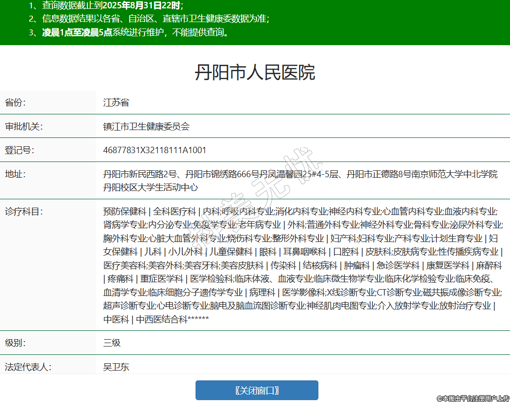 省份:江蘇省審批機關(guān):鎮(zhèn)江市衛(wèi)生健康委員會登記號:46877831X32118111A1001地址:丹陽市新民西路2號、丹陽市錦繡路666號丹鳳溫馨園25#4-5層、丹陽市正德路8號南京師范大學(xué)中北學(xué)院丹陽校區(qū)大學(xué)生活動中心診療科目:預(yù)防保健科 | 全科醫(yī)療科 | 內(nèi)科;呼吸內(nèi)科專業(yè);消化內(nèi)科專業(yè);神經(jīng)內(nèi)科專業(yè);心血管內(nèi)科專業(yè);血液內(nèi)科專業(yè);腎病學(xué)專業(yè);內(nèi)分泌專業(yè);免疫學(xué)專業(yè);老年病專業(yè) | 外科;普通外科專業(yè);神經(jīng)外科專業(yè);骨科專業(yè);泌尿外科專業(yè);胸外科專業(yè);心臟大血管外科專業(yè);燒傷科專業(yè);整形外科專業(yè) | 婦產(chǎn)科;婦科專業(yè);產(chǎn)科專業(yè);計劃生育專業(yè) | 婦女保健科 | 兒科 | 小兒外科 | 兒童保健科 | 眼科 | 耳鼻咽喉科 | 口腔科 | 皮膚科;皮膚病專業(yè);性傳播疾病專業(yè) | 醫(yī)療美容科;美容外科;美容牙科;美容皮膚科 | 傳染科 | 結(jié)核病科 | 腫瘤科 | 急診醫(yī)學(xué)科 | 康復(fù)醫(yī)學(xué)科 | 麻醉科 | 疼痛科 | 重癥醫(yī)學(xué)科 | 醫(yī)學(xué)檢驗科;臨床體液、血液專業(yè);臨床微生物學(xué)專業(yè);臨床化學(xué)檢驗專業(yè);臨床免疫、血清學(xué)專業(yè);臨床細胞分子遺傳學(xué)專業(yè) | 病理科 | 醫(yī)學(xué)影像科;X線診斷專業(yè);CT診斷專業(yè);磁共振成像診斷專業(yè);超聲診斷專業(yè);心電診斷專業(yè);腦電及腦血流圖診斷專業(yè);神經(jīng)肌肉電圖專業(yè);介入放射學(xué)專業(yè);放射治療專業(yè) | 中醫(yī)科 | 中西醫(yī)結(jié)合科******級別:三級法定代表人:吳衛(wèi)東主要負責人:吳衛(wèi)東執(zhí)業(yè)許可證有效期:2023/07/13 -至- 2038/01/11 -
