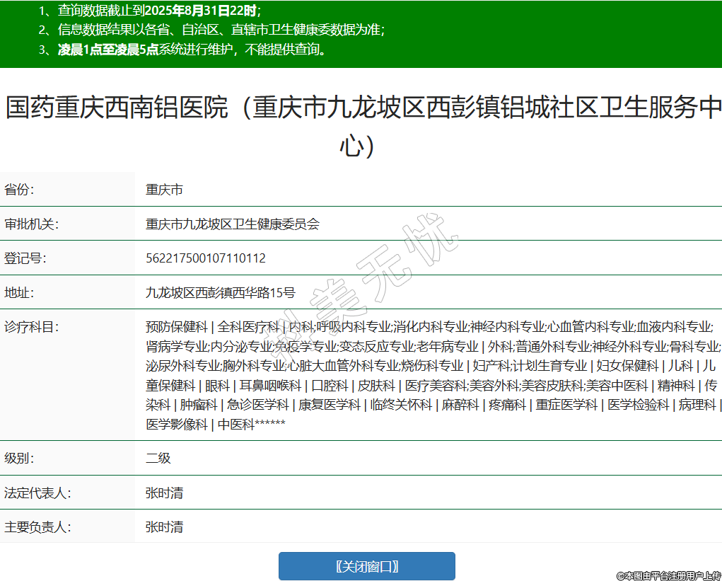 國藥重慶西南鋁醫(yī)院(重慶市九龍坡區(qū)西彭鎮(zhèn)鋁城社區(qū)衛(wèi)生服務中心)皮膚美容