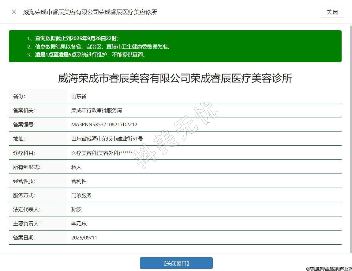 威海榮成市睿辰美容有限公司榮成睿辰醫(yī)療美容診所