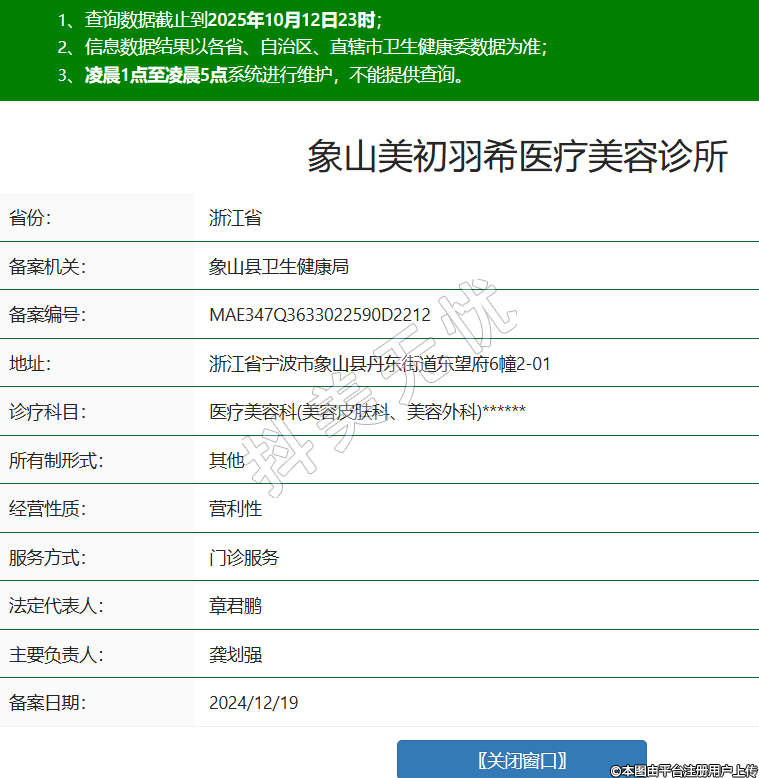 省份:浙江省備案機(jī)關(guān):象山縣衛(wèi)生健康局備案編號:MAE347Q3633022590D2212地址:浙江省寧波市象山縣丹東街道東望府6幢2-01診療科目:醫(yī)療美容科(美容皮膚科、美容外科)******所有制形式:其他經(jīng)營性質(zhì):營利性服務(wù)方式:門診服務(wù)法定代表人:章君鵬主要負(fù)責(zé)人:龔劃強(qiáng)備案日期:2024/12/19 -