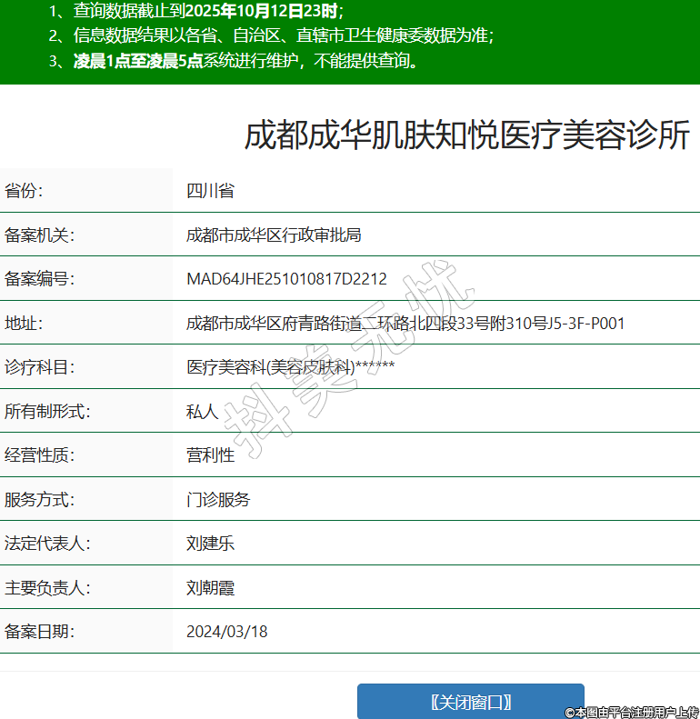 省份:四川省備案機(jī)關(guān):成都市成華區(qū)行政審批局備案編號(hào):MAD64JHE251010817D2212地址:成都市成華區(qū)府青路街道二環(huán)路北四段33號(hào)附310號(hào)J5-3F-P001診療科目:醫(yī)療美容科(美容皮膚科)******所有制形式:私人經(jīng)營(yíng)性質(zhì):營(yíng)利性服務(wù)方式:門(mén)診服務(wù)法定代表人:劉建樂(lè)主要負(fù)責(zé)人:劉朝霞備案日期:2024/03/18 -