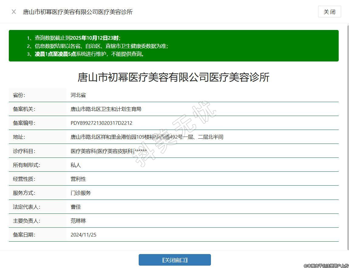 唐山初冪醫(yī)療美容診所成立于2024年,位于唐山市路北區(qū)祥和里金港怡園109樓裕華西道492號一層、二層北半間,是經(jīng)唐山市衛(wèi)健局審核批準(zhǔn)的規(guī)范化醫(yī)療美容機構(gòu),秉持 “嚴(yán)選醫(yī)美、品質(zhì)醫(yī)美、定制醫(yī)美” 的經(jīng)營理念,依托專業(yè)醫(yī)師團(tuán)隊,為求美者提供皮膚治療、微整形等多元服務(wù)。環(huán)境規(guī)范舒適,以專業(yè)醫(yī)療標(biāo)準(zhǔn)為基石,兼顧服務(wù)溫度,切實滿足愛美人士對醫(yī)美服務(wù)的需求。