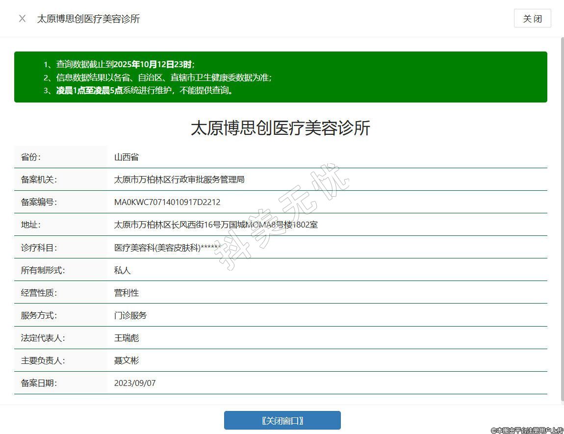 太原博思創(chuàng)醫(yī)療美容診所于2019年成立,坐落于山西省太原市萬柏林區(qū)長風(fēng)西街16號萬國城MOMA8號樓1802室,作為經(jīng)批準(zhǔn)設(shè)立的醫(yī)療美容機構(gòu),診所持有合法資質(zhì),經(jīng)營范圍涵蓋醫(yī)療美容服務(wù)、生活美容服務(wù)等許可項目,配備專業(yè)醫(yī)師團隊,店內(nèi)裝修注重細節(jié)與氛圍營造,同時提供貼心的服務(wù)支持,致力于為顧客打造舒適的體驗環(huán)境。