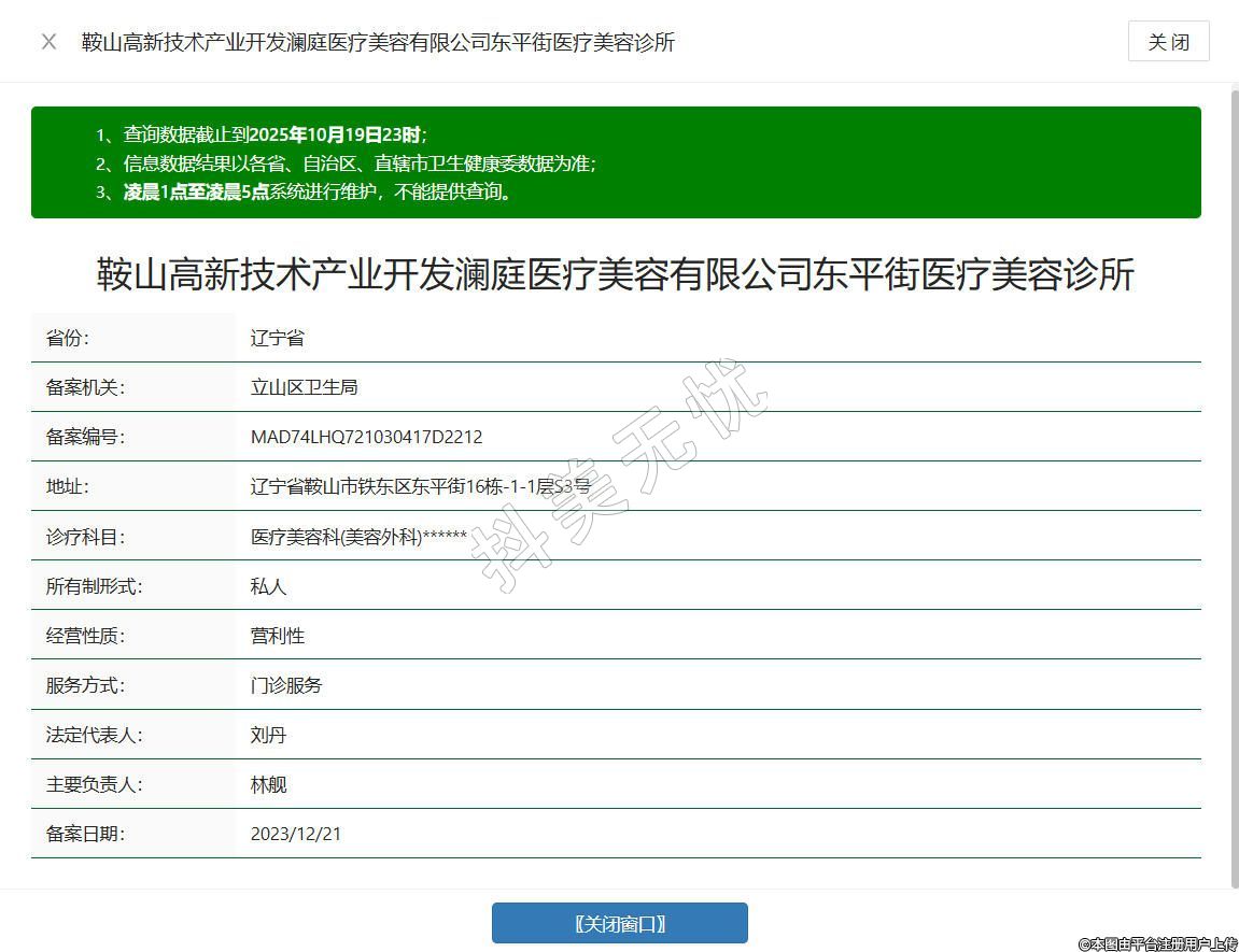 鞍山高新技術(shù)產(chǎn)業(yè)開(kāi)發(fā)瀾庭醫(yī)療美容有限公司東平街醫(yī)療美容診所