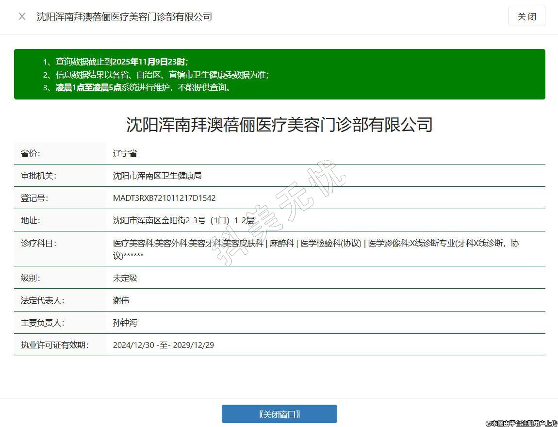 沈陽渾南拜澳蓓儷醫(yī)療美容門診部有限公司