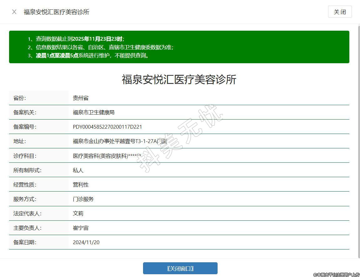 福泉安悅匯醫(yī)療美容診所成立于2024年,位于貴州省福泉市金山辦事處平越壹號T3-1-27A門面,是依法設(shè)立的專業(yè)醫(yī)療美容機構(gòu),持有《醫(yī)療機構(gòu)執(zhí)業(yè)許可證》,聚焦美容外科、美容皮膚科等合規(guī)診療科目,提供基礎(chǔ)醫(yī)療美容服務(wù),匯聚具備執(zhí)業(yè)資質(zhì)的專業(yè)醫(yī)師團隊,始終堅守合規(guī)執(zhí)業(yè)底線,尊重就醫(yī)者隱私權(quán),以專業(yè)醫(yī)療服務(wù)為基礎(chǔ),為有需求的人士提供規(guī)范、安心的醫(yī)療美容體驗。