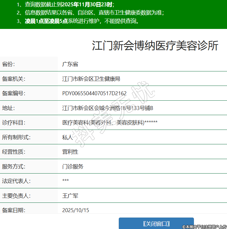 省份:廣東省備案機(jī)關(guān):江門市新會(huì)區(qū)衛(wèi)生健康局備案編號(hào):PDY00655044070517D2162地址:江門市新會(huì)區(qū)會(huì)城今洲路18號(hào)133號(hào)鋪B診療科目:醫(yī)療美容科(美容外科、美容皮膚科)******所有制形式:私人經(jīng)營(yíng)性質(zhì):營(yíng)利性服務(wù)方式:門診服務(wù)法定代表人:***主要負(fù)責(zé)人:王廣軍備案日期:2025/10/15 -