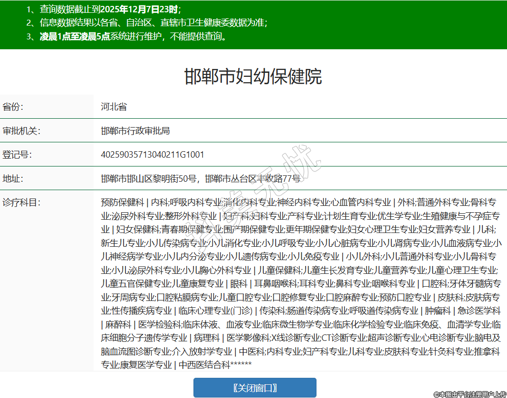 省份:河北省審批機關:邯鄲市行政審批局登記號:40259035713040211G1001地址:邯鄲市邯山區(qū)黎明街50號,邯鄲市叢臺區(qū)豐收路77號診療科目:預防保健科 | 內(nèi)科;呼吸內(nèi)科專業(yè);消化內(nèi)科專業(yè);神經(jīng)內(nèi)科專業(yè);心血管內(nèi)科專業(yè) | 外科;普通外科專業(yè);骨科專業(yè);泌尿外科專業(yè);整形外科專業(yè) | 婦產(chǎn)科;婦科專業(yè);產(chǎn)科專業(yè);計劃生育專業(yè);優(yōu)生學專業(yè);生殖健康與不孕癥專業(yè) | 婦女保健科;青春期保健專業(yè);圍產(chǎn)期保健專業(yè);更年期保健專業(yè);婦女心理衛(wèi)生專業(yè);婦女營養(yǎng)專業(yè) | 兒科;新生兒專業(yè);小兒傳染病專業(yè);小兒消化專業(yè);小兒呼吸專業(yè);小兒心臟病專業(yè);小兒腎病專業(yè);小兒血液病專業(yè);小兒神經(jīng)病學專業(yè);小兒內(nèi)分泌專業(yè);小兒遺傳病專業(yè);小兒免疫專業(yè) | 小兒外科;小兒普通外科專業(yè);小兒骨科專業(yè);小兒泌尿外科專業(yè);小兒胸心外科專業(yè) | 兒童保健科;兒童生長發(fā)育專業(yè);兒童營養(yǎng)專業(yè);兒童心理衛(wèi)生專業(yè);兒童五官保健專業(yè);兒童康復專業(yè) | 眼科 | 耳鼻咽喉科;耳科專業(yè);鼻科專業(yè);咽喉科專業(yè) | 口腔科;牙體牙髓病專業(yè);牙周病專業(yè);口腔粘膜病專業(yè);兒童口腔專業(yè);口腔修復專業(yè);口腔麻醉專業(yè);預防口腔專業(yè) | 皮膚科;皮膚病專業(yè);性傳播疾病專業(yè) | 臨床心理專業(yè)(門診) | 傳染科;腸道傳染病專業(yè);呼吸道傳染病專業(yè) | 腫瘤科 | 急診醫(yī)學科 | 麻醉科 | 醫(yī)學檢驗科;臨床體液、血液專業(yè);臨床微生物學專業(yè);臨床化學檢驗專業(yè);臨床免疫、血清學專業(yè);臨床細胞分子遺傳學專業(yè) | 病理科 | 醫(yī)學影像科;X線診斷專業(yè);CT診斷專業(yè);超聲診斷專業(yè);心電診斷專業(yè);腦電及腦血流圖診斷專業(yè);介入放射學專業(yè) | 中醫(yī)科;內(nèi)科專業(yè);婦產(chǎn)科專業(yè);兒科專業(yè);皮膚科專業(yè);針灸科專業(yè);推拿科專業(yè);康復醫(yī)學專業(yè) | 中西醫(yī)結(jié)合科******級別:三級法定代表人:胡建華主要負責人:胡建華執(zhí)業(yè)許可證有效期:2015/01/08 -至- 2030/01/08 -