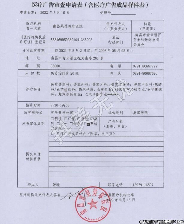診療科目:醫(yī)療美容科|美容外科|美容牙科|美容皮膚科|美容中醫(yī)科/麻醉科/醫(yī)學(xué)檢驗科|臨床體液、血液專業(yè)|臨床化學(xué)檢驗專業(yè)/醫(yī)學(xué)影像科|超聲診斷專業(yè)|心電診斷專業(yè)******