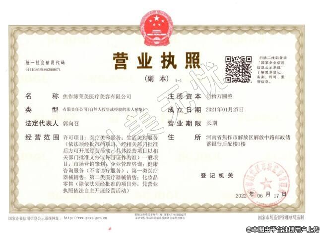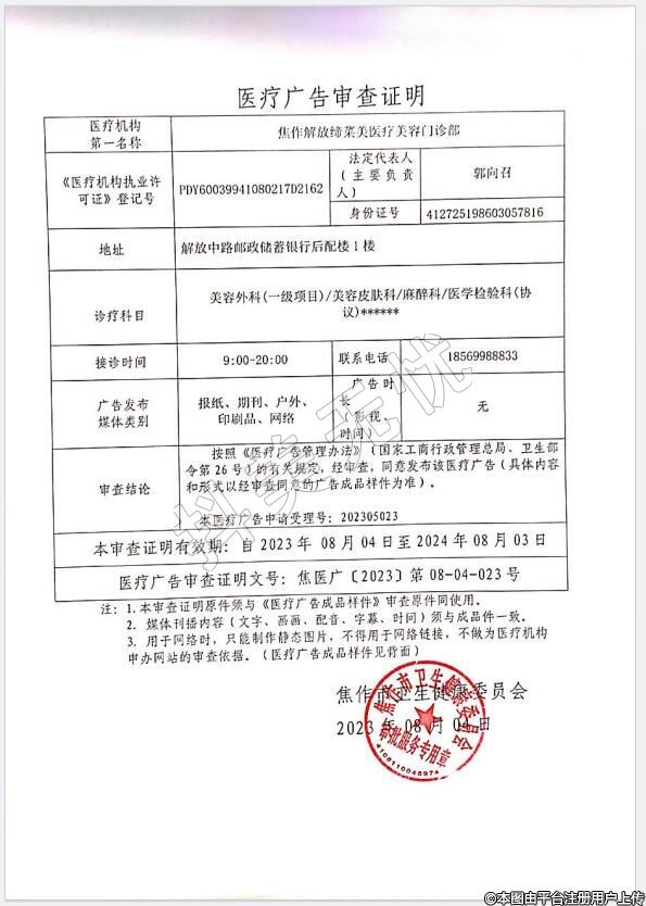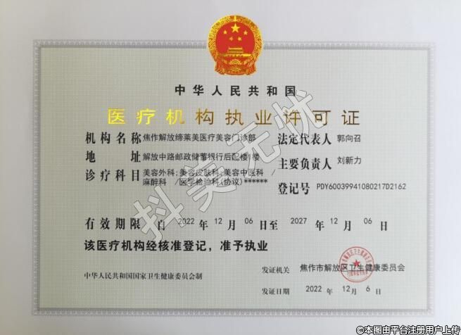 發(fā)證機關(guān):焦作市解放區(qū)衛(wèi)生健康委員會