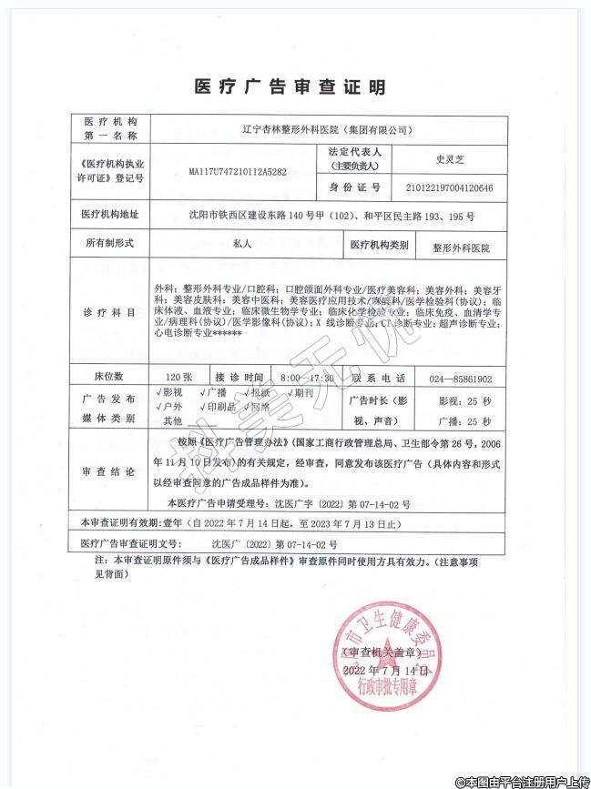 醫(yī)療機(jī)構(gòu)名稱:遼寧杏 林整形外科醫(yī)院(集團(tuán)有限公司)