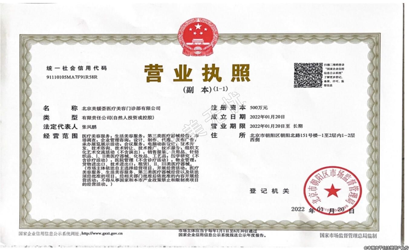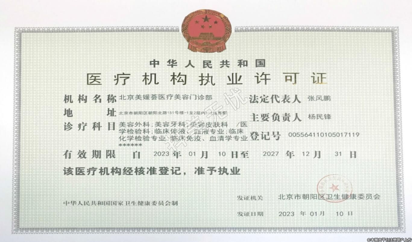 發(fā)證機關:北京市朝陽區(qū)衛(wèi)生健康委員會
