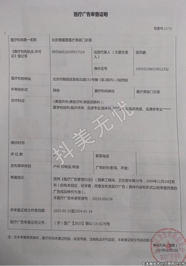 診療科目:醫(yī)療美容科;美容外科;美容牙科;美容皮膚科;美容中醫(yī)科//麻醉科//醫(yī)學檢驗科|臨床體液、血液專業(yè) //醫(yī)學影像科|超聲診斷專業(yè)******