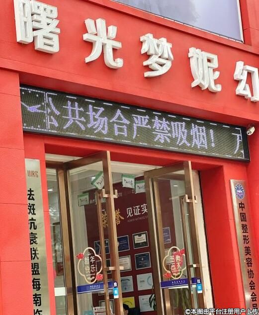 海南曙光夢(mèng)妮幻醫(yī)療美容鋪面是以紅色為主的色彩,整體來說,裝修還是很不錯(cuò)的。