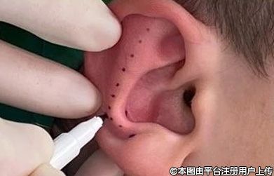 在前皮膚表面標(biāo)記的2-3個關(guān)鍵點處以及螺旋槽處的關(guān)鍵點處穿刺,以準(zhǔn)確放置縫合線。折疊耳廓以暴露針頭,并水平放置4-0透明尼龍縫線(根據(jù)針頭的放置位置),然后在不穿過前皮膚表面的情況下以尾-頭朝向,然后以頭-尾朝向放置永久的4-0透明尼龍縫線。