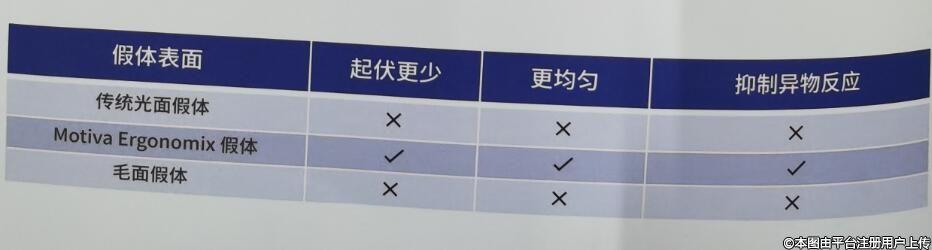 與傳統(tǒng)光面假體不同的是,Motiva Ergonomix是表面平均粗糙度在4um以下的霧面假體。