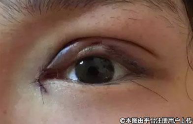 6、雙眼皮過(guò)窄 需要待消腫后進(jìn)行二期手術(shù),切口線上移作新切口,向下剝離使新老切口成為一個(gè)整體,再做重瞼縫合;