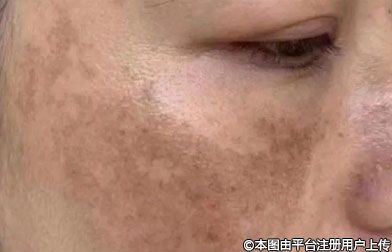 邊緣清晰、大小不等的黃褐色或深褐色斑片,多見于中青年女性面部,對稱性分布于易接受日光照射部位。常呈蝴蝶形分布于顴部及頰部,也可發(fā)生于前額、鼻、口周等部位。