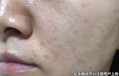 兩頰毛孔堵塞、粗大且出油嚴(yán)重。