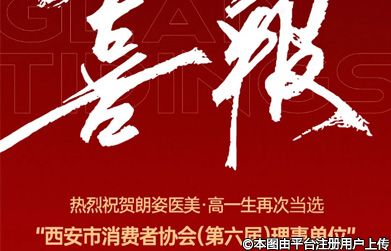 近日,朗姿醫(yī)美·高一生再次當(dāng)選“西安市消費(fèi)者協(xié)會(第六屆)理事單位”!系西安市醫(yī)療美容行業(yè)唯一獲授單位!這一殊榮,是實(shí)力的象征,更是責(zé)任的擔(dān)當(dāng)!
