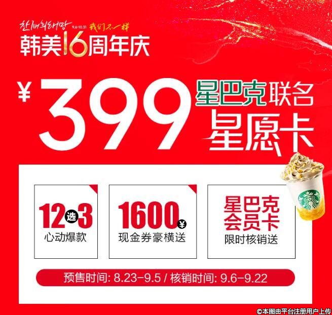 韓美×星巴克聯(lián)名“星愿卡”爆款項目12選3僅需399元!!