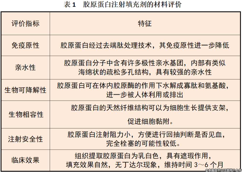 關(guān)于膠原蛋白注射填充劑的材料評價(jià),大家可以收藏這張表。