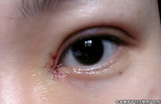 1.術(shù)后眼角瘢痕明顯。