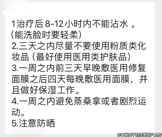 這期間工作人員會(huì)給出做完醫(yī)美之后的保養(yǎng)建議,我對(duì)什么是械字號(hào)發(fā)出了疑問,工作人員又給解釋了下。出來(lái)后工作人員不放心,又告訴我一遍,最后還在項(xiàng)目全都結(jié)束用文字的方式再囑咐一遍,很負(fù)責(zé)。